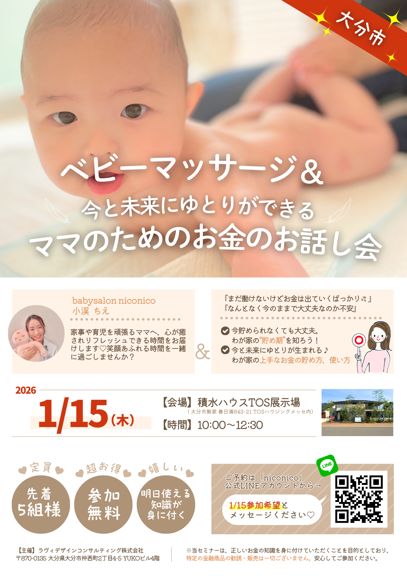 【大分市】ベビーマッサージ and ママのためのお金のお話し会