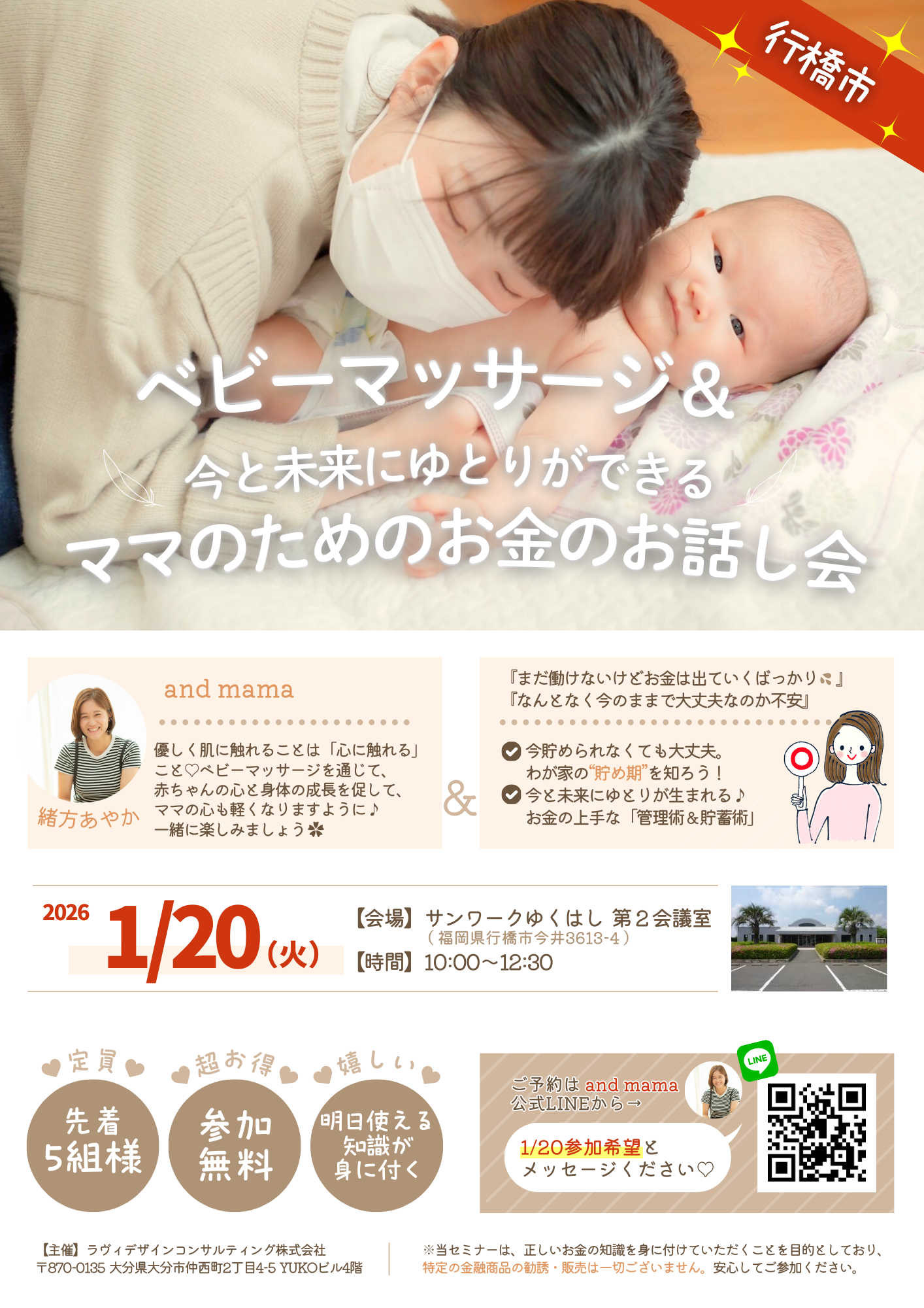 【行橋市】ベビーマッサージ × 今と未来にゆとりができる ママのためのお金のお話し会